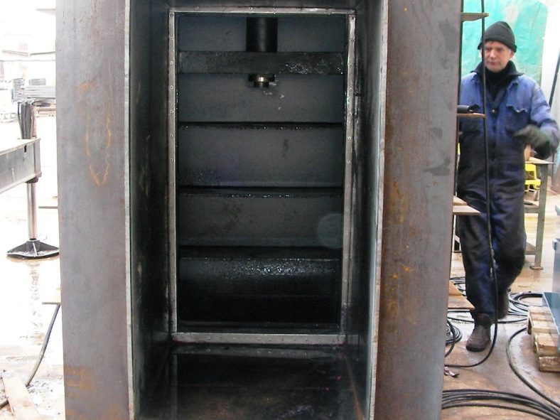 Las compuertas de casquete con salida inferior están fabricadas con chapa de acero que se refuerza con varias secciones de acero para soportar las presiones del agua.
