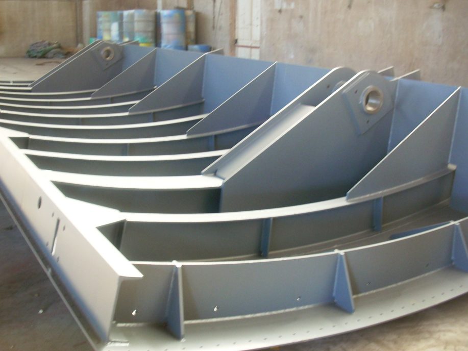 Les vannes à clapet sont fabriquées en tôle d’acier, convenablement renforcée avec divers profilés en acier pour résister aux pressions de l’eau.