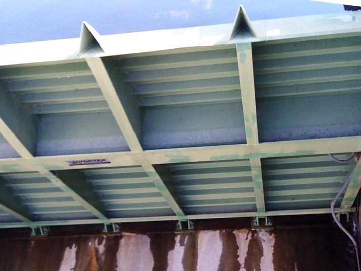 - Système d’étanchéité : des joints en caoutchouc situés à la fois dans les poutres de fondation inférieures et les bords latéraux des vannes qui s’emboîtent dans des cadres d’étanchéité en acier inoxydable fixés aux écrans latéraux adjacents montés sur piliers.