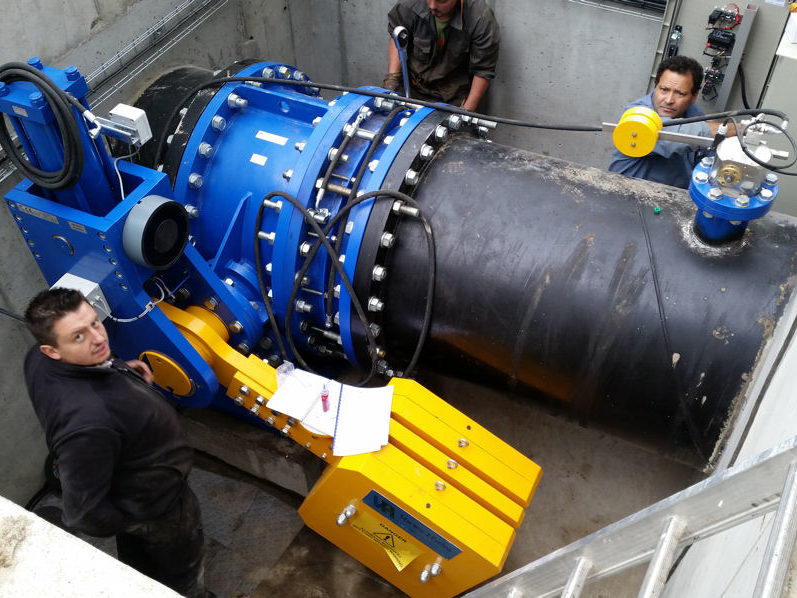 - Protection de la conduite forcée : la vanne sert à la fois de dispositif de sécurité et d’entretien de la conduite forcée. En règle générale, les vannes utilisées dans ce type d’application sont caractérisées par de grands diamètres.